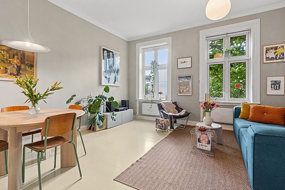 En gjennomgående og lun 2-roms andelsleilighet i indre gårdsrom med peisovn, klassiske detaljer og gjennomgående god standard.