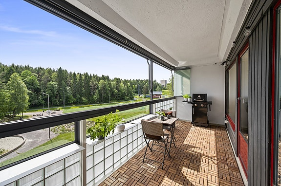 - Innglasset, solrik balkong på 13 kvm