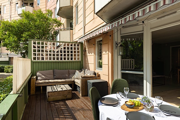 Innbydende 2-r vendt mot rolig bakgård | Stor, solrik terrasse på 16m² | A-konto oppvarming | Garasjeanlegg i nærheten