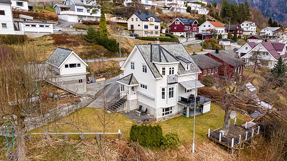 Enebolig med stor tomt, dobbel betonggarasje med lagring i Fagerlivegen.