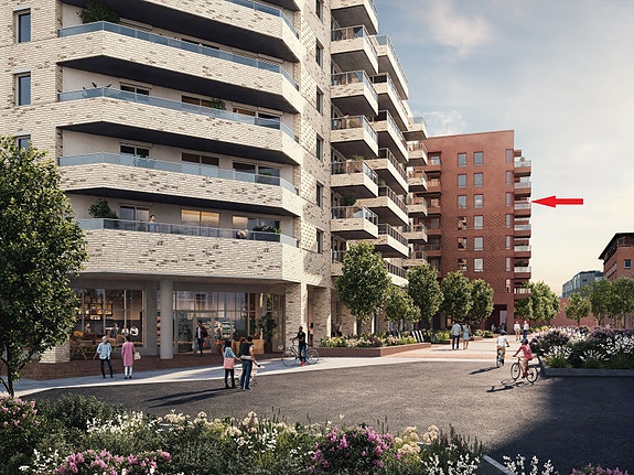 Flott, ny hjørneleilighet i 6. etasje i det meget populære Grønvollkvartalet. Sydvestvendt balkong og solrikt beliggende mot bilfritt gatetun. Fantastisk felles takterrasse i 9. etasje.