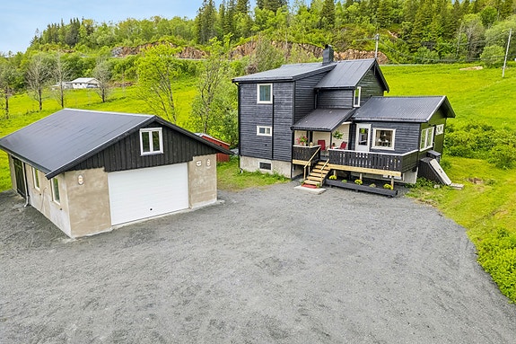 Boligen går over 3 plan og inneholder godt med soverom, kjøkken fra 2016, bad/vaskerom renovert i 2016 og godt med bodareal m.m. I tillegg får du en garasje med tilhørende naustrom i bakkant som ble ferdig i 2019. Garasjen har også varme i gulv. Eiendommen har tinglyst rettighet for båtutsett. En flott mulighet for deg som både vil bo fast, men også deg som ønsker en sekundærbolig/fritidsbolig på Helgelandskysten. Adkomst fra fylkesveien er sikret gjennom tinglyst veirett. Boligen krever noe vedlikehold og er et flott utgangspunkt for deg som vil sette dit eget preg!