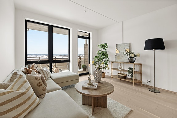 Her får du en lys leilighet med store vindusflater, stor balkong på 8 kvm og utsikt mot Lillestrøm. Sportsbod i kjeller og mulighet for garasjeleie for kr 20.000 per år. Leilighetene inneholder Entre, stue, kjøkken , 2 bad/wc og 2 soverom. Her er det mulighet for en hybeldel på 18 kvm for de som ønsker det.