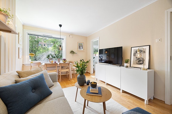 Velkommen til en lys og luftig 2-roms med store vindusflater og en gjennomtenkt planløsning som utnytter hver kvadratmeter godt. Leiligheten ligger i et populært og rolig område, med kort vei til både marka og sentrum. Her bor du med nærhet til t-bane, buss, skole, fritidstilbud og flotte turområder en ideell kombinasjon for deg som ønsker det beste av både byliv og natur.