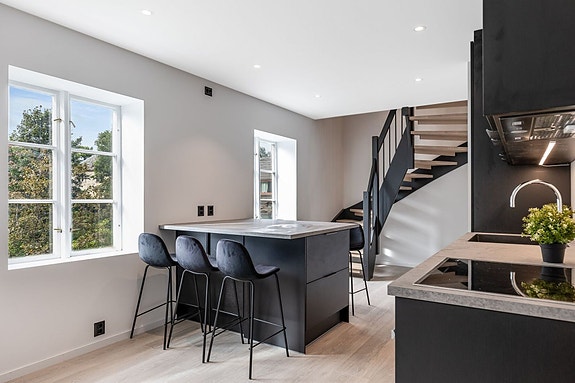 Denne boligen byr på moderne komfort i en klassisk bygård med sjel. Hele leiligheten ble omfattende renovert innvendig i 2020/21, inkludert full utskifting av det elektriske anlegget og røropplegget. Taket er også fornyet med nytt undertak, beslag og takrenner.