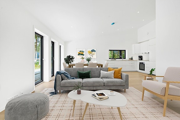 Det er gåavstand til barnehage, skule, daglegvare, kino og badeland. Flotte turmoglegheiter og aktivitetar i nærheiten, samt tilgang til sandstrand og symjebasseng.