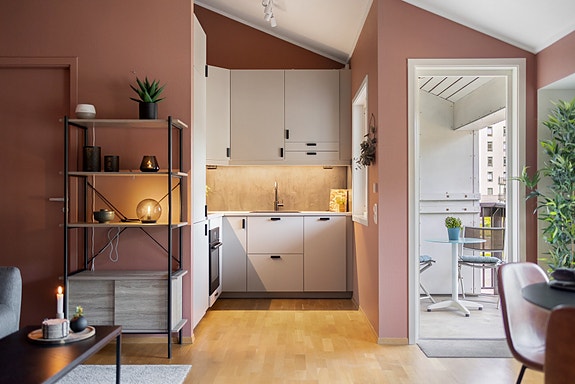 Arealeffektiv 2-r toppleilighet med urban beliggenhet | Generøs takhøyde | Lekkert kjøkken og bad | Heis og parkering