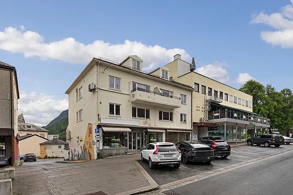 Fin leilighet midt i Åndalsnes sentrum. Leiligheten ligger i 3. etasje med både øst- og vestvendte veranda. Parkering i bakgården.