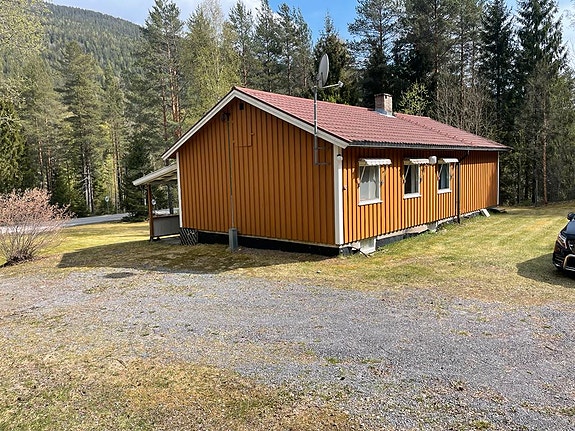 Eneboligen ligger langsmed E16 på Ringmoen.