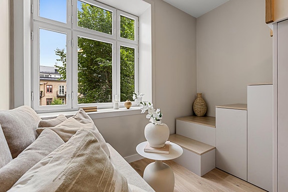 Denne leiligheten kommer med møbelsnekrede og plassutnyttende løsninger fra The Apartment Store.