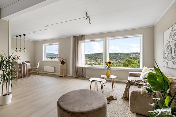 Søråshøgda | Herlig leilighet over to plan. Fantastiske utsiktsforhold. Tett på skole, barnehage, Lagunen og Bybanen.