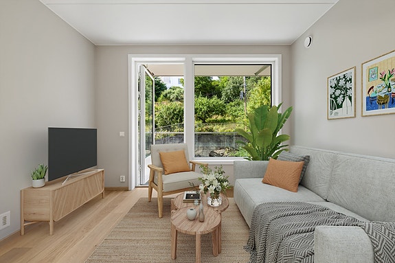 Smedens Hage er et nyskapende boligprosjekt med fokus på moderne, miljøvennlige og funksjonelle løsninger. Er du på jakt etter en helt ny leilighet med god beliggenhet, ta en titt på denne. Leiligheten er nyoppført i 2025 og har aldri vært i bruk. Her får du muligheten til å flytte rett inn og nyte alle moderne fasiliteter som følger med et nybygg. God planløsning som inneholder stue med åpen kjøkkenløsning med lysinnslipp fra to sider. Stuen forlenges helt naturlig på sommerhalvåret ut på balkongen som ligger vendt mot nordvest. Entré med adkomst til innvendig bod. Romslig soverom med plass til garderobeskap og dobbeltseng med nattbord.