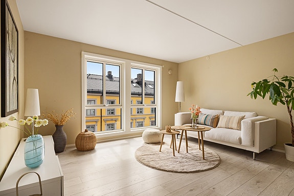 Leiligheten ligger i et skjermet og populært område på Grünerløkka, og byr på en lun atmosfære, store vindusflater og en gjennomtenkt planløsning.