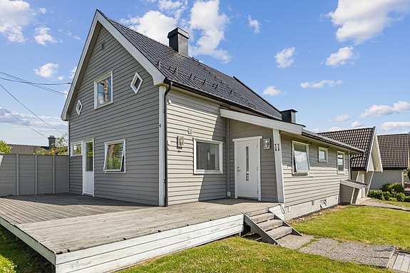 Terrassen på ca. 37 kvm vender mot sydvest og tomten er pent opparbeidet med hage og gruset innkjørsel. Dobbelgarasje med smøregrav og loft gir gode lagringsmuligheter.