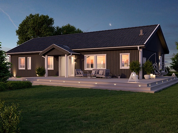 På Ingulstad er det flere tomter som kan leveres med denne type bolig eller andre modeller fra Älvsbyhus.