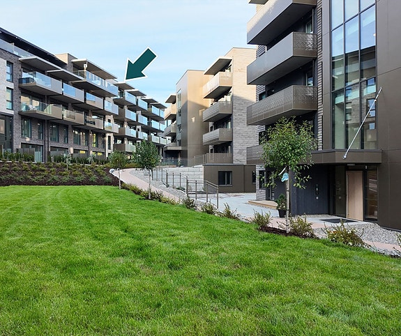Her får du vannbåren gulvvarme, romslig eiet parkeringsplass i garasjeanlegg og tilgang til treningsrom, hobbyrom, bilvask, gjesterom og nabolagskafé med fjordutsikt.