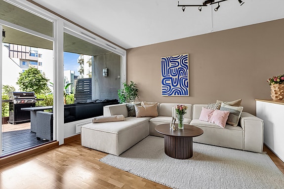 Lys og attraktiv 2-roms selveier m/ stor markterrasse - Felles takterrasse - Lave felleskostnader - Sentral beliggenhet