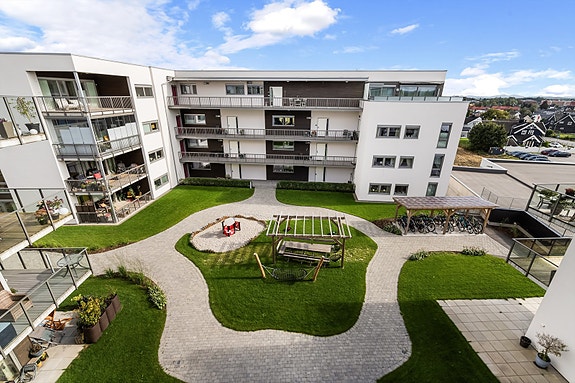 Heisann, Simen Smith Ringdal fra NORDVIK BOLIG her. Nå har jeg gleden av å presentere en leilighet utenom det vanlige. Dette her er rett og slett toppen av toppen på Haukerød. Her ser du så langt øye rekker til fjella der sola går ned, langt i det fjerne. En fantastisk balkong på 32 kvm gir deg noe helt forskjellig fra andre leiligheter der ofte balkong og et frimerke er av samme størrelse.