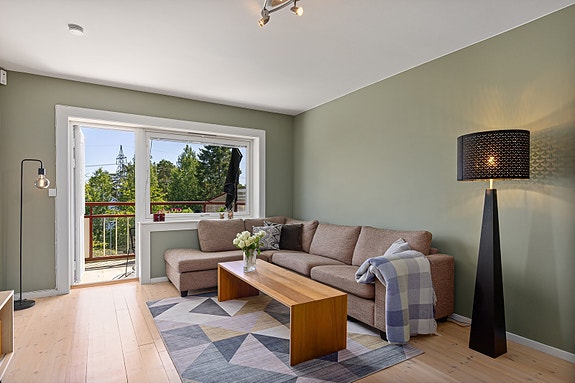Lys og trivelig stue med utgang til sydvendt balkong.