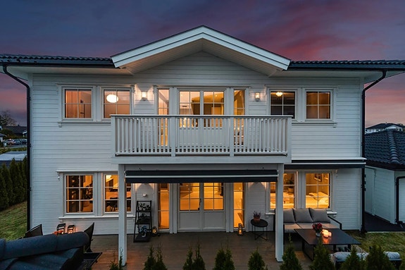 Innvendig byr boligen på en romslig entré med god garderobeløsning, en lys og luftig stue med peisovn, og et tidløst kjøkken med moderne innredning. To stilrene baderom med moderne detaljer, samt loftstue med utgang til balkong, gir ekstra komfort. Boligen har fire soverom, hvor hovedsoverommet har walk-in løsning med dobbel skyvedørsgarderobe.