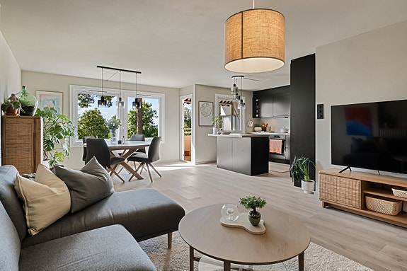 Velkommen til et moderne og tiltalende hjem i et populært og veldrevet borettslag på Hosle! Leiligheten har en praktisk og gjennomgående planløsning med god romfølelse. Store vinduer gir rikelig med dagslys og en lys, luftig atmosfære som passer like godt til rolige hverdager som til sosiale sammenkomster.