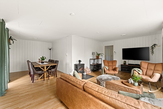 Velkommen til en koselig enebolig som byr på god plass, praktiske løsninger og fine uteområder. Her får du tre romslige soverom, et lyst og innbydende oppholdsrom med stue og spisestue i åpen løsning, samt et trivelig kjøkken med plass til spisebord. Fra stuen er det utgang til en solrik terrasse - perfekt for rolige morgenkaffer eller sosiale sammenkomster på varme sommerdager.