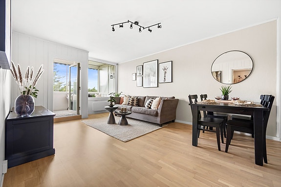 Pen, gjennomgående og romslig 3-roms toppleilighet - Innglasset, vestvendt balkong med fint utsyn - Nærhet til Østmarka