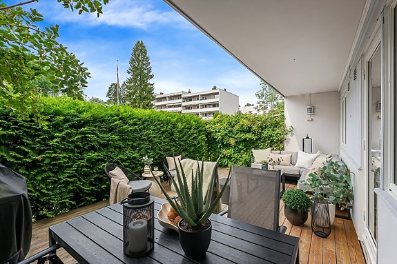 Lys og velholdt 3-roms endeleilighet med solrik og skjermet markterrasse på hele 27 kvm. Optimal planløsning med romslige, gode rom og store vindusflater som slipper inn rikelig med naturlig lys. Boligen oppleves meget usjenert med lite innsyn og hyggelig, grønt utsyn.