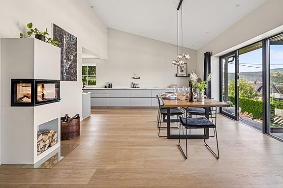 Velkommen til en attraktiv og moderne enebolig over to plan med oppgradert høy standard og funksjonelle løsninger. Boligen har romslige og lyse oppholdsrom, to bad, to stuer, flere soverom, vaskerom, garderoberom og god oppbevaringsplass. Kjøkken og stue har åpen løsning med peisovn og utgang til både hage, balkong og solrik, skjermet platting.