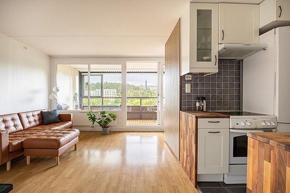 Ammerud | Lys andelsleilighet med smart alkove. 8. etasje m/heis. Stor, innglasset balkong på 11 kvm. Fyring & v.v. inkl