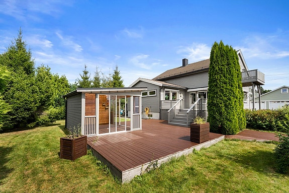 Hel tomannsbolig i et attraktivt og barnevennlig område | Nytt kjøkken & bad | 5 Soverom | Solrike uteplasser | Garasje