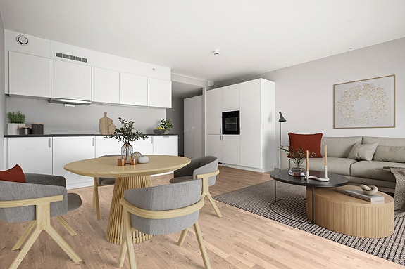 Ny og innflyttingsklar leilighet. Bildet er digitalt stylet.