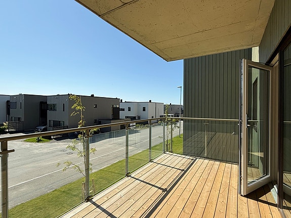 Flott 3-roms leilighet fra 2024 i 2. etasje. Stor, skjermet veranda mot sør. Garasje og heis.