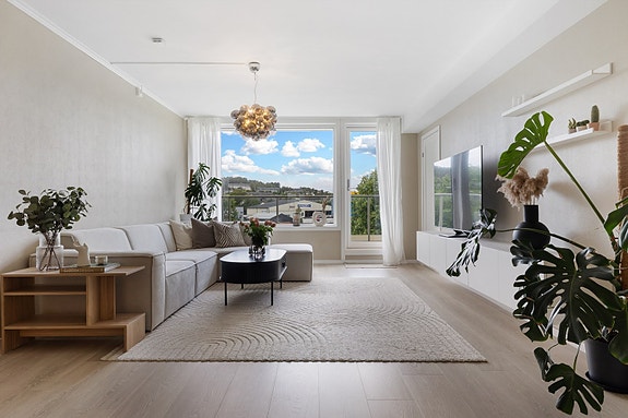 Eiendommen har en svært sentral og praktisk beliggenhet på Li, med kort vei til dagligvarebutikk (Kiwi Nyborg, ca. 100 meter) og gode bussforbindelser via rute 4 til Åsane terminal og sentrum. Leiligheten ligger i toppetasjen (3. etasje) og skiller seg ut med en gjennomtenkt og romslig planløsning - ideell for familier og alle som ønsker en komfortabel hverdag uten vedlikehold.