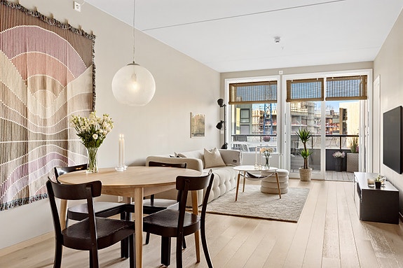 En stor, lys og flott 4-roms selveiet frontleilighet mot Akerselva! Leiligheten ligger på enden i byggets 3. etasje, og har en innholdsrik planløsning med et stort oppholdsrom, 3 soverom, 2 baderom og innvendig bod. Det er store og flotte uteplasser i begge ender som er godt skjermet i en grønn oase. Dette er en sjelden mulighet!
