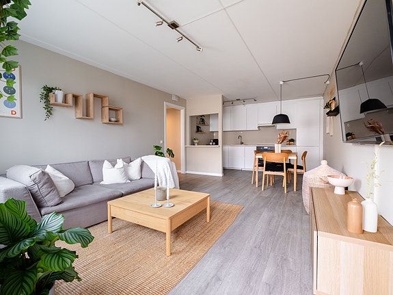 Dette er en innbydende 3-roms toppleilighet med en god planløsning. Leiligheten består av entré, bod, to soverom, bad og en åpen stue- og kjøkkenløsning. Fra stuen er det utgang til en flott balkong på ca. 6 kvm med plass for sittegruppe og grill.