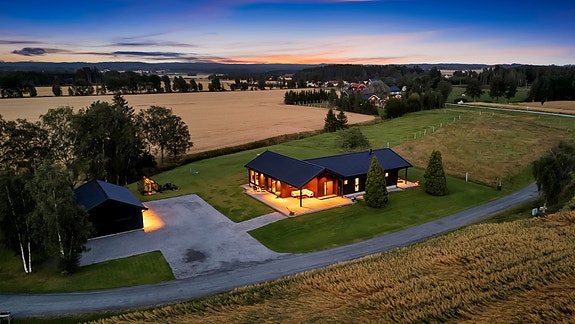 Heiaveien 316 er en idyllisk og landlig eiendom i vakre omgivelser. Her får man roen med stor tomt i stille og landlig nærområde kombinert med det moderne, hvor huset er totalrenovert og tilbygd i 2021.
