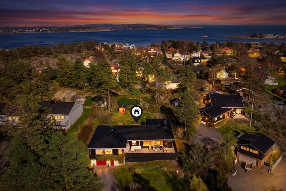 Velkommen til en innbydende enebolig på en stor og solrik hjørnetomt i et rolig og veletablert boligområde. Boligen har en praktisk planløsning på ett plan med romslig entré, lys og luftig stue med peisovn og skyvedør til terrasse, samt åpen kjøkkenløsning. To (mulighet for tre) gode soverom, pent bad kombinert med vaskerom og separat toalett.
