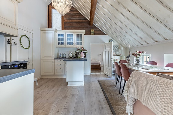 Klassisk enebolig midt i sentrum, men likevel litt tilbaketrukket. Nydelig liten uteplass foran hovedinngangen og koselig skjermet terrasse foran boligen. I tillegg er det port inn til bakhage med gruset adkomstvei med steinheller, trapp og en liten terrasse med hagebod. Herlige tømmervegger, bjelker i taket og en spesielt sjarmerende atmosfære. Her har du fin utsikt og kort vei til alle byens fasiliteter. Parkeringsplasser på egen grunn. Selger har leid ut deler av i U. etg men det er ikke godkjent utleiedel og det er begrenset takhøyde/branntekniske krav.