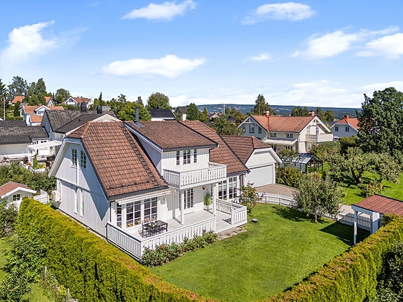 Tiltalende og påkostet familiebolig med usjenert hage. Nyere kjøkken og bad. Dobbelgarasje.