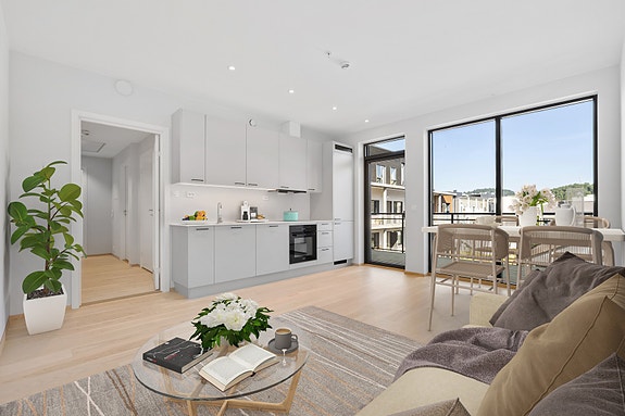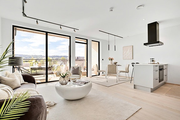 Kvadratmeterpris tilsvarer prisantydning pluss fellesgjeld per kvadratmeter (p-rom eller BRA-i). Prisene i grafen er avrundet til nærmeste 1000 kr.