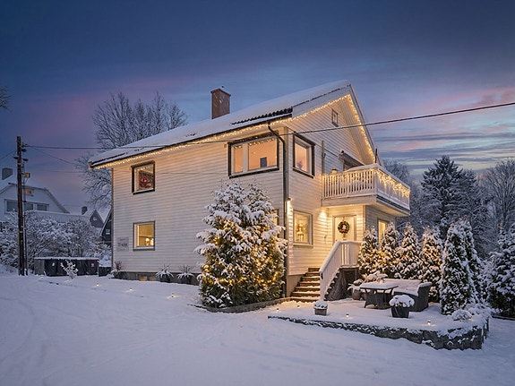 Attentus har gleden av å presentere denne fine boligen i all sin juleprakt. Det gjøres oppmerksom på at bildet er KI generert, og avviker fra virkeligheten.