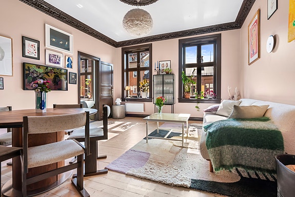 Rålekker klassisk leilighet med spennende fargevalg. Stilrent baderom fra 2021. Balkong mot frodig bakgårdsmiljø.