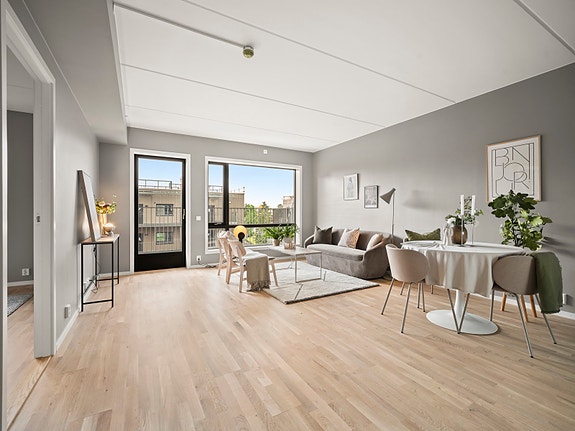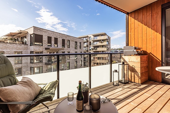 En stor, lys og innbydende 3-roms selveierleilighet i et nyere og moderne bygg fra 2019. Leiligheten ligger i byggets 3. etasje, og har en gjennomgående og god planløsning. Fra stuen har du utgang til en solrik balkong som er perfekt på varme sommerdager. Store vindusflater og god takhøyde på ca. 2,6 meter gir en luftig romfølelse. Leiligheten holder en gjennomgående god og moderne standard fra 2019 - her kan du flytte rett inn!