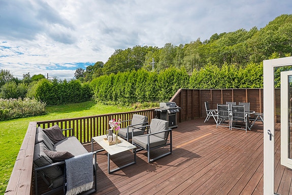 Boligen står på romslig tomt som byr på flere flotte uteområder med både terrasse og hage, og god plass til parkering i innkjørsel og garasje. Det er også inngjerdet hundegård på ca 500 kvm.