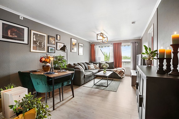 Her får du en innflytningsklar bolig med praktisk planløsning og gode oppbevaringsmuligheter. Leiligheten ligger i et rolig og barnevennlig område med kort vei til skole, barnehage og dagligvarebutikker. Bussforbindelsene til Fredrikstad og Sarpsborg er svært gode, og balkongen på 9 kvm vender vest, perfekt for å nyte kveldssolen.