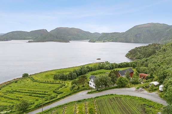 Nærøysund - Idyllisk småbruk på 675 daa, hvorav 31 daa fulldyrket. Flott utsikt og lang strandlinje. Jaktrettigheter.