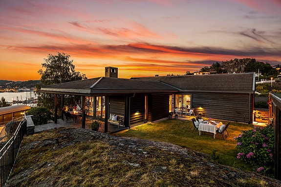 Nydelig og solid utsiktseiendom tegnet av det anerkjente arkitektkontoret Lund Hagem AS. Privat og flott beliggenhet !