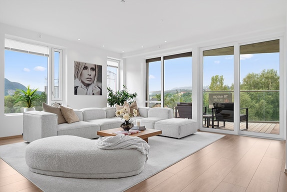 Strøken og påkostet leilighet fra 2023 | Fantastisk kjøkken | Bad + wc | 2 store balkonger med utsikt | P-plass m/​lader