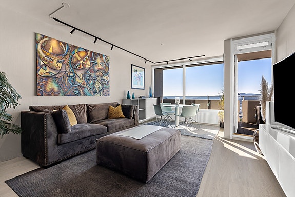 Lekker 2-roms vesentlig oppgradert i 2024/25 | 9. etasje m/heis | Balkong | Nydelig utsikt | Fyring inkl. | Garasjeplass